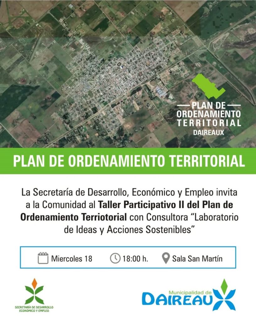 Te invitamos a participar del segundo Taller Participativo del Plan de Ordenamiento Territorial, un espacio de encuentro y diálogo donde vecinos, instituciones y personas comprometidas con la comunidad podrán compartir ideas, opiniones y propuestas para pensar el desarrollo de nuestra ciudad y el distrito.